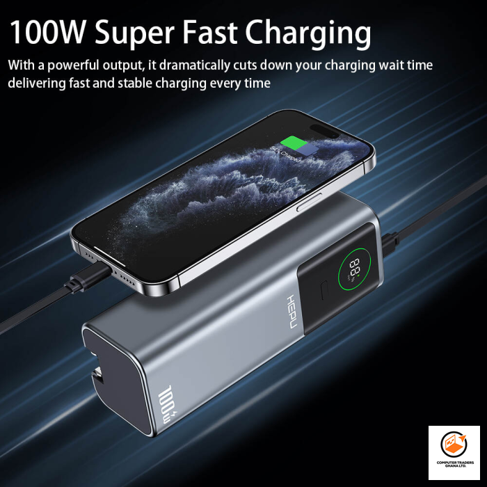 ⚡️ HEPU -A31 LAPTOP Power Bank 🌞 “Sunshine of Life” — Power that Moves with You! ⸻ 🔋 Power Packed • 20,000mAh capacity – charge your Laptops, phone multiple times! • Dual USB Output (5V/1A & 5V/2A) for fast & flexible charging • Built-in Cable – works as charger and data cable • Strong Lithium-ion battery for reliable performance ⸻ 💎 Smart Design • Sleek & compact: 140×63×22mm | 400g • Digital display shows real-time battery % • Elegant grey finish – stylish & durable • CE, FCC, RoHS certified for quality assurance ⸻ 🛡️ Safe & Reliable • 100% high-quality build • Protection against overcharge, short-circuit & overheating ⸻ 💼 Perfect For • Everyday users, travelers & professionals • Retail display, bulk sales & tech promotions ⸻ 🔥 Why You’ll Love It ✅ All-in-one charging solution ✅ Fast, safe & portable ✅ Trusted quality you can rely on