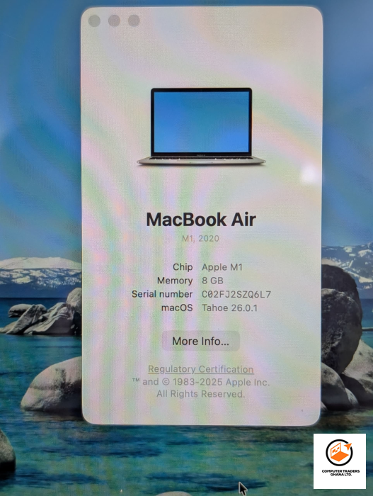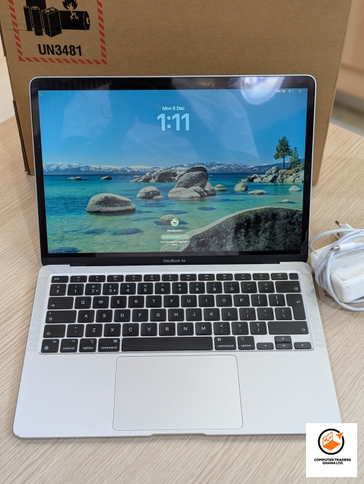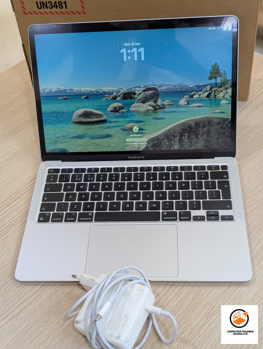 *MacBook Air M1, 2020* YEAR: 2020, 13-inch Chip: Apple M1 Processor •Memory (RAM): 8GB •Storage (SSD): 256GB •13.3-inch Retina display, •Power circle count: 210 •Ports: •2 × Thunderbolt / USB 4 ports •Keyboard: Magic Keyboard with scissor mechanism, •Audio: Stereo speakers, three-mic array, 3.5 mm headphone jack •Wi-Fi 6, Bluetooth 5.0