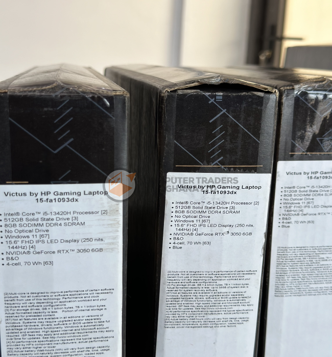 *HP Victus 15 GAMING* 15-FA2013DX 13TH GEN Core™ i5-13420H 2.1~4.6GHz Speed 12CPUs 8GB Ram, 512GB SSD NVMe 15.6 inch FHD IPS 144Hz *NVIDIA®️ GeForce RTX™️ 3050 6GB GDDR6* Keyboard Light, USB-C, HDMI Color: Performance Blue.``` Condition: BRAND NEW SEALED 📦more in stock